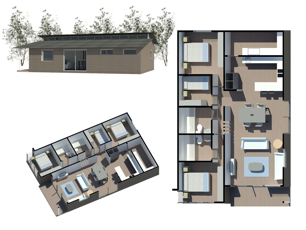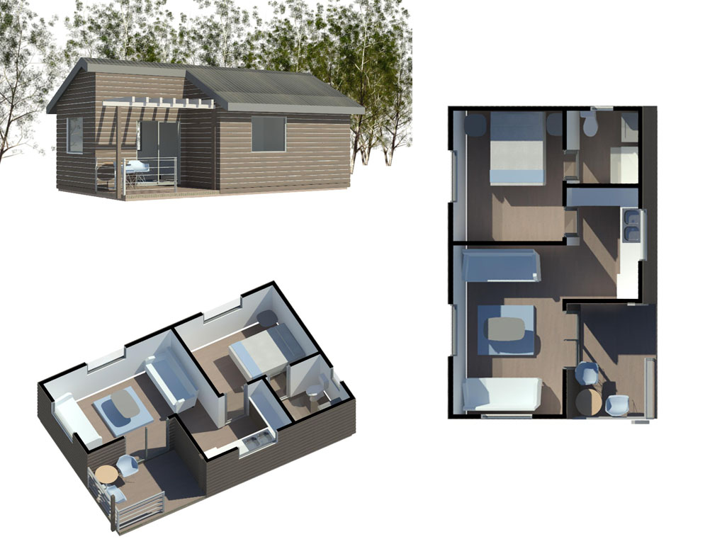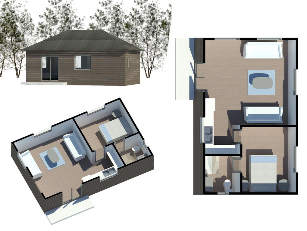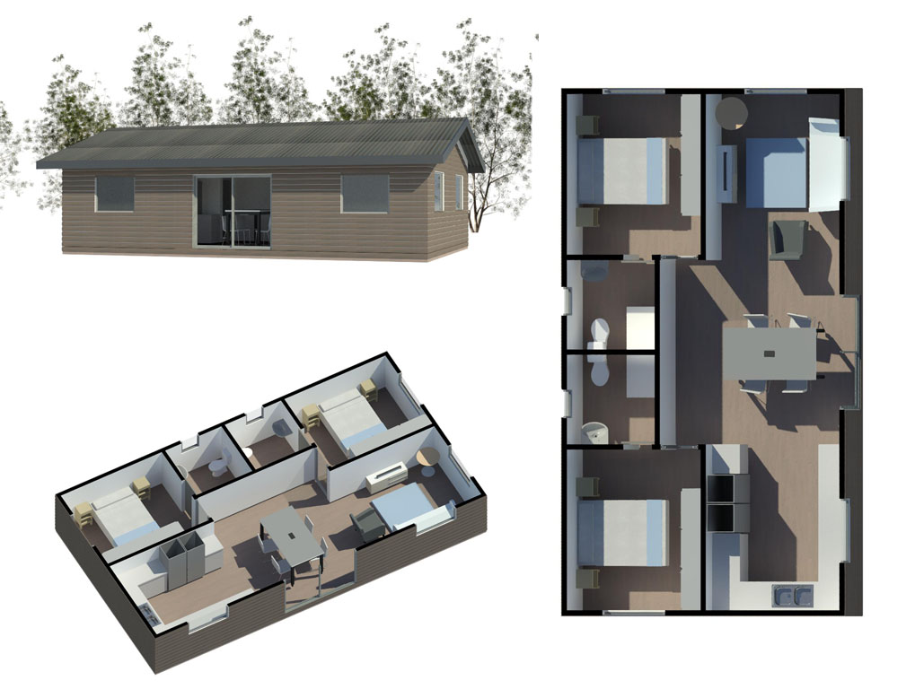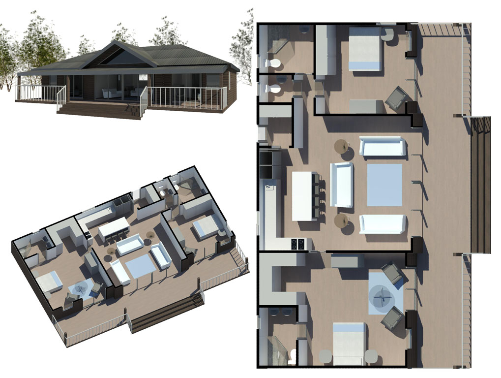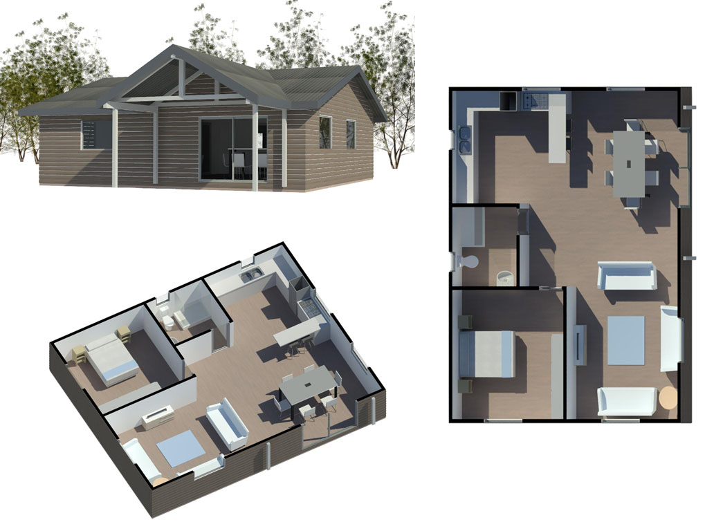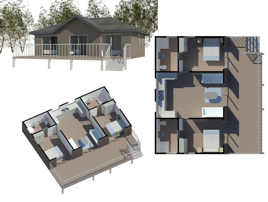 Plan: DA2.3 Bedroom (4m x 8m) + (4m x 7.5m) = 62m2 Open Veranda = 20m2 House build on 600mm stilts